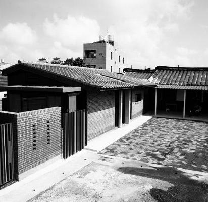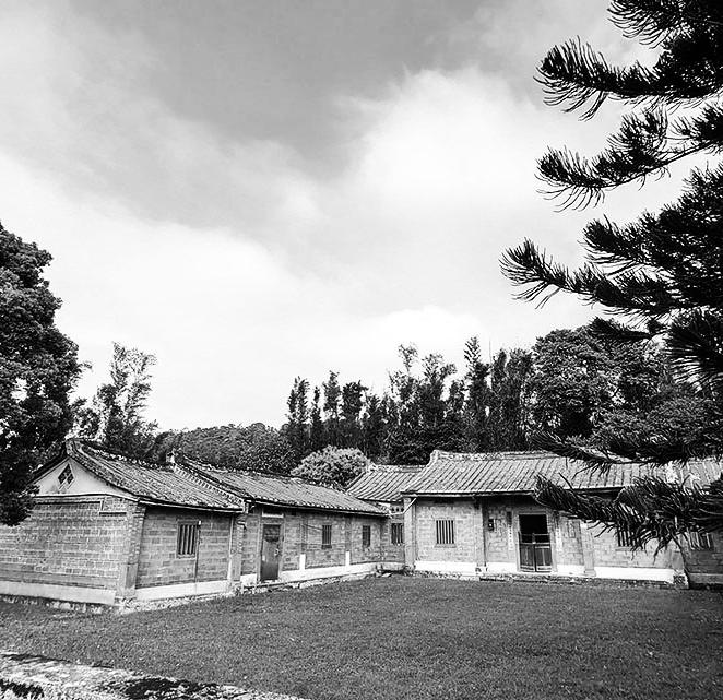 加上卵石基礎,共設有一進、兩 護龍之構造,外圍紅褐色外牆的