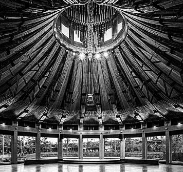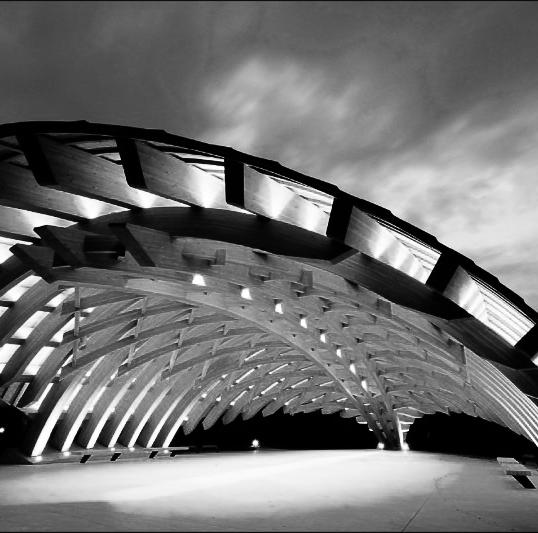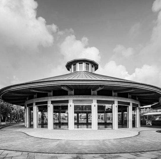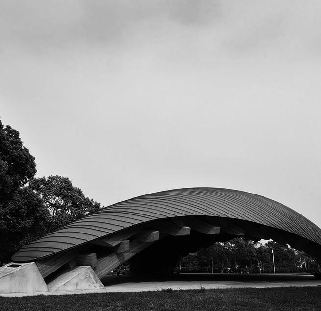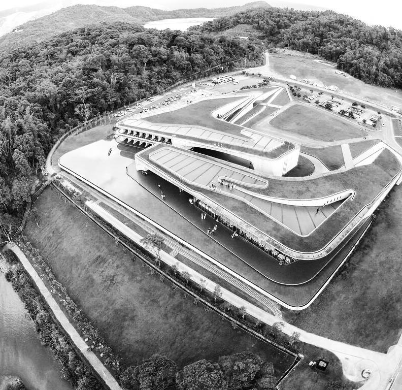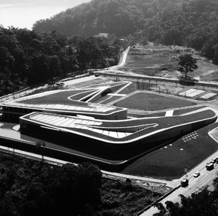 向山行政暨遊客中心 是作為 紀念台灣中部南投縣所發生的 九二一大地震的復興建設而打造 的建築。其結構采用梁空跨樓 版,並設置設置了跨距35米的 預力混凝土之空跨,由這兩個空 跨相互交叉疊合,塑出半開放式 的大空間。