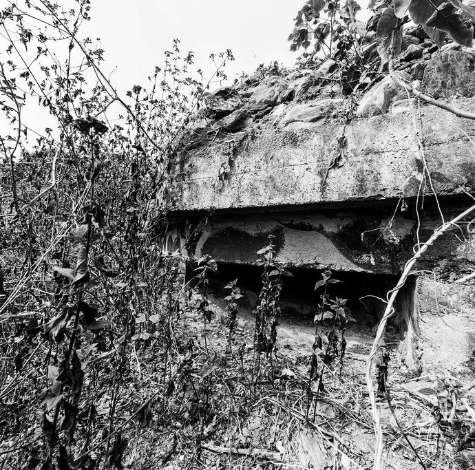 戰後 A01-A04 碉堡屬 於火炮掩體,呈ㄇ字狀 結構,開口寬闊,為 鋼筋混凝土之結構體, 外壁有彩色迷彩 塗裝,上覆以 土石及植被,形 成防空之偽裝。