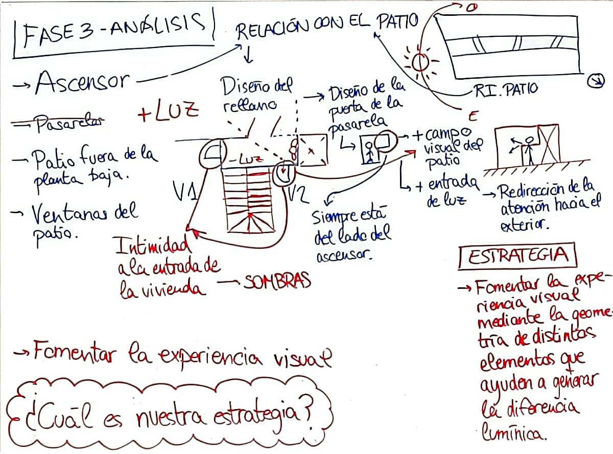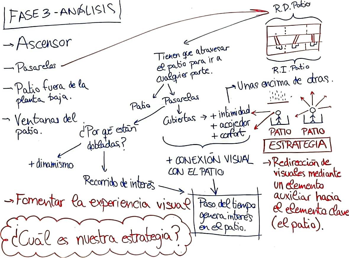 El espacio que vamos a analizar en este caso es el patio interior. Además de aspectos ya mencionados en otras ocasiones, como cuestiones bioclimáticas o el atractivo visual del espacio a estudiar, nos han llamado la atención cuatro aspectos en relación con el patio.