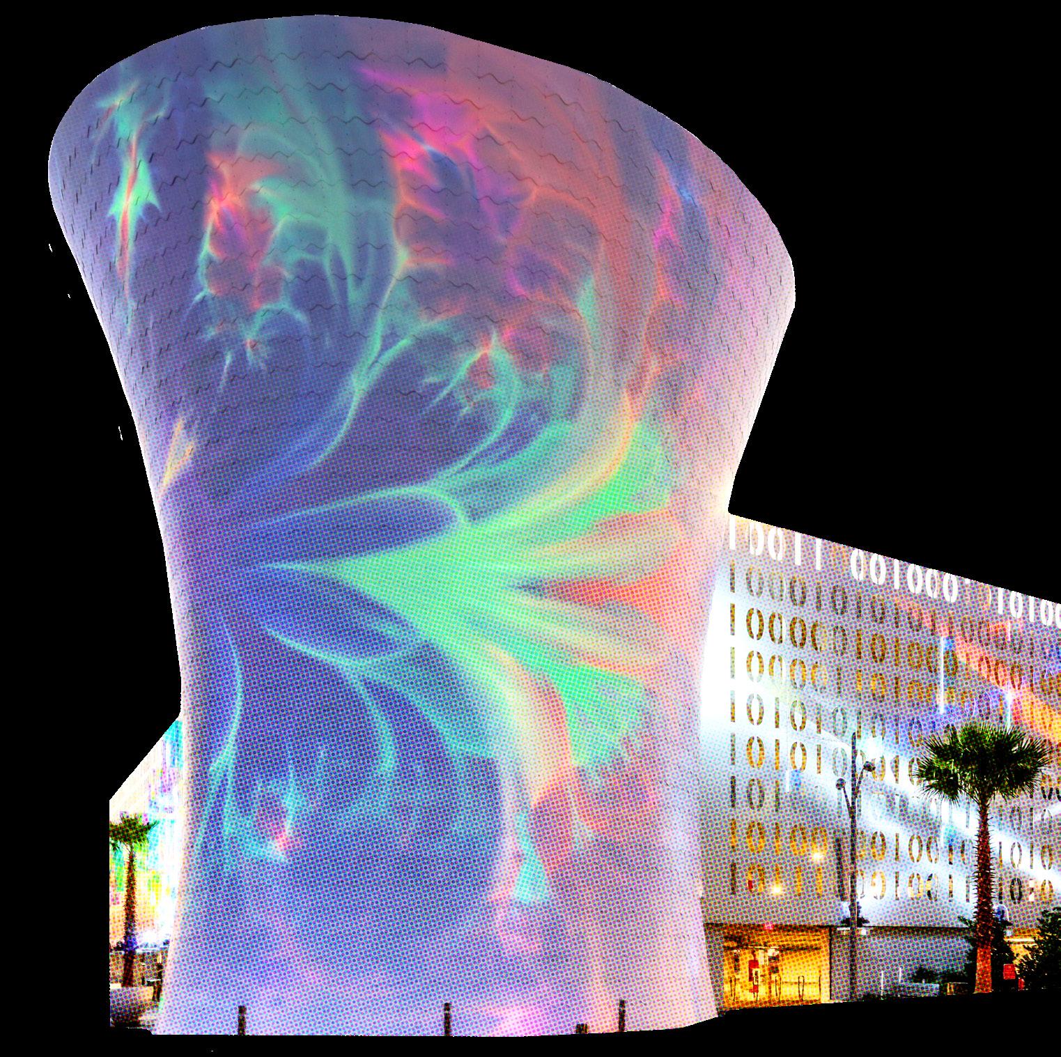 Speaking of art, the hotel’s adjacent parking structure features a striking installation on its exterior by Lake Nona artist JEFRË. This stunning combination of Braille and LED accents transforms the building into a kaleidoscope of color come sunset.