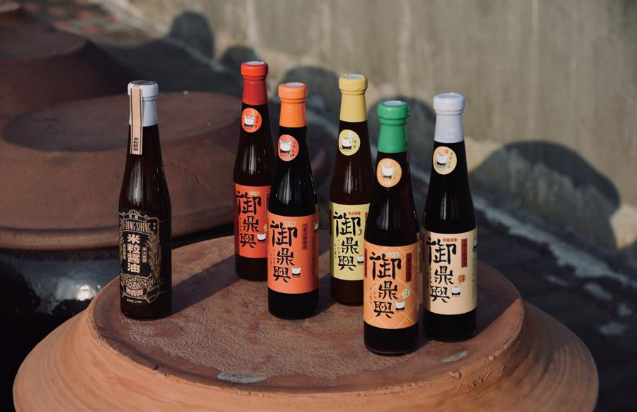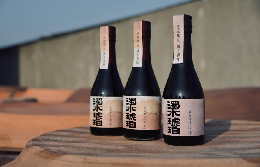 對於老字號產業來說,設計的確是一道關鍵的敲 門磚。御鼎興自 2012 年起著手品牌改造,雖然兄 弟倆皆沒有設計背景,但卻具備著美感與設計思 維。謝宜澂認為品牌設計最重要的不是吸引目光, 而是要讓人願意進一步理解品牌背後的故事。御 鼎興的設計理念並非憑空杜撰,而是建立在傳統 脈絡之上,因而更具厚度。他們陸續與設計師合 作,開發如「裸醬」、「濁水琥珀」等系列產品, 每一款皆有其背後的故事,透過充分傳達品牌定 位的標籤設計,重現了臺灣醬油傳統製程的價值, 讓御鼎興從市場中脫穎而出。