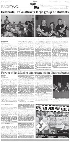 FROM BULLDOG, PAGE 1 Coleman described the day as, “an enlightening experience” and remembered when he was a high school student with many questions. He enjoyed being able to help kids whose shoes he was in not too long ago. All in all, Bulldog for a Day was a huge success. Everage shared that the hopes for the day were that students developed a passion for continued education. She also noted that the Office of the Provost has a program in the works to develop a partnership between Drake and local Des Moines high schools. It will pair current students with prospective ones to mentor