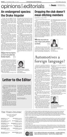 THE TIMES-DELPHIC THE STUDENT NEWSPAPER FOR DRAKE UNIVERSITY SINCE 1884 LIZZIE PINE, Editor-in-Chief editor@timesdelphic.com JESSICA MATTES, Managing Editor features@timesdelphic.com MATT MORAN, Sports Editor sports@timesdelphic.com
