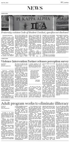 Fraternity violates Code of Student Conduct, specifics not disclosed CONTINUED FROM PAGE 1 Although IFC aims to help and support its members, certain situations prohibit the governing body from taking action. Usually IFC or The Panhellenic Council (the governing body of sororities) would handle situations of misconduct and reprimanding rule-breaking Greek organizations. But when protecting student confidentiality is called into question, the Dean of Students Office will overtake the investigation and decisionmaking in regards to fraternity and sorority violations. This is the case with PIKE, as the specifics of the allegations