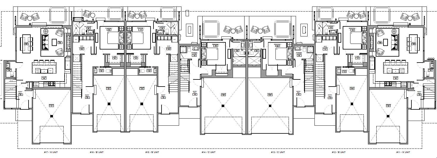 The two bedroom townhomes have first floor living which includes custom kitchen cabinetry, Wolf and Sub Zero appliances including ample wine coolers, gas fireplaces, white oak flooring and professionally designed premium finishes.