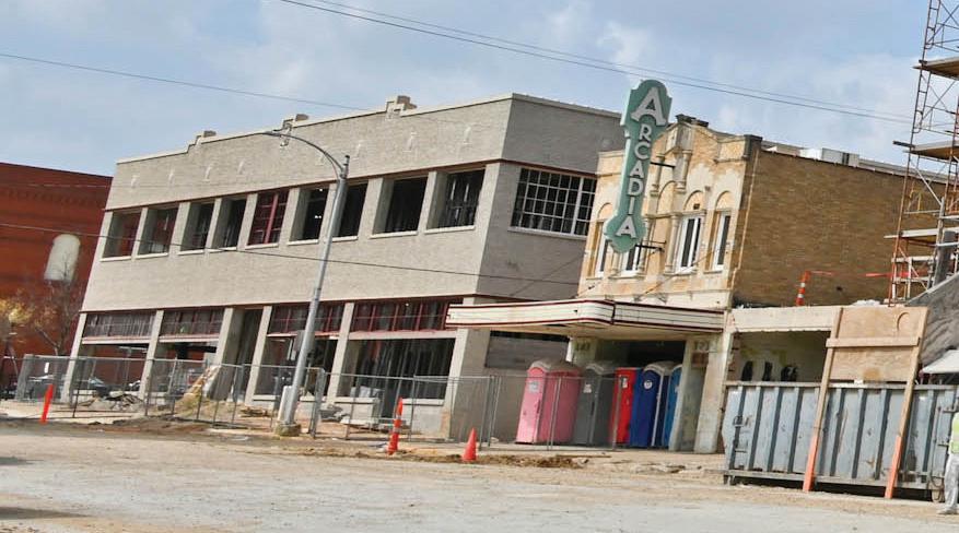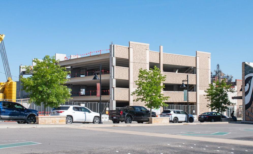 Main photo: Bell County Couthouse by Dave Hedge. Photo Left: A garage is quickly rising in downtown Temple. Joel Valley. Center: Participants honor the flags as the Bell County Sheriff Honor Guard posts the colors for the National Day of Prayer in front of the Bell County Courthouse Nan Dickson/Special to the Telegram. Right: Banners fill the arched columns at Luther Memorial on the UMHB campus as the University prepares for Welcome Week Nan. Dickson/Special to the Telegram.