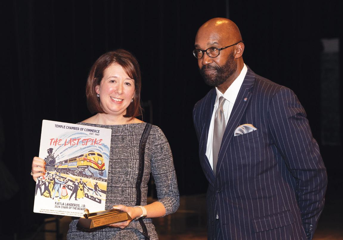 The Last Spike Award celebrated her leadership in uniting businesses and championing progress, making a lasting mark on the Temple community through her role on the Temple Chamber of Commerce Board. It is fitting that Kayla, as our third female chair in history, was the first to receive this honor.
