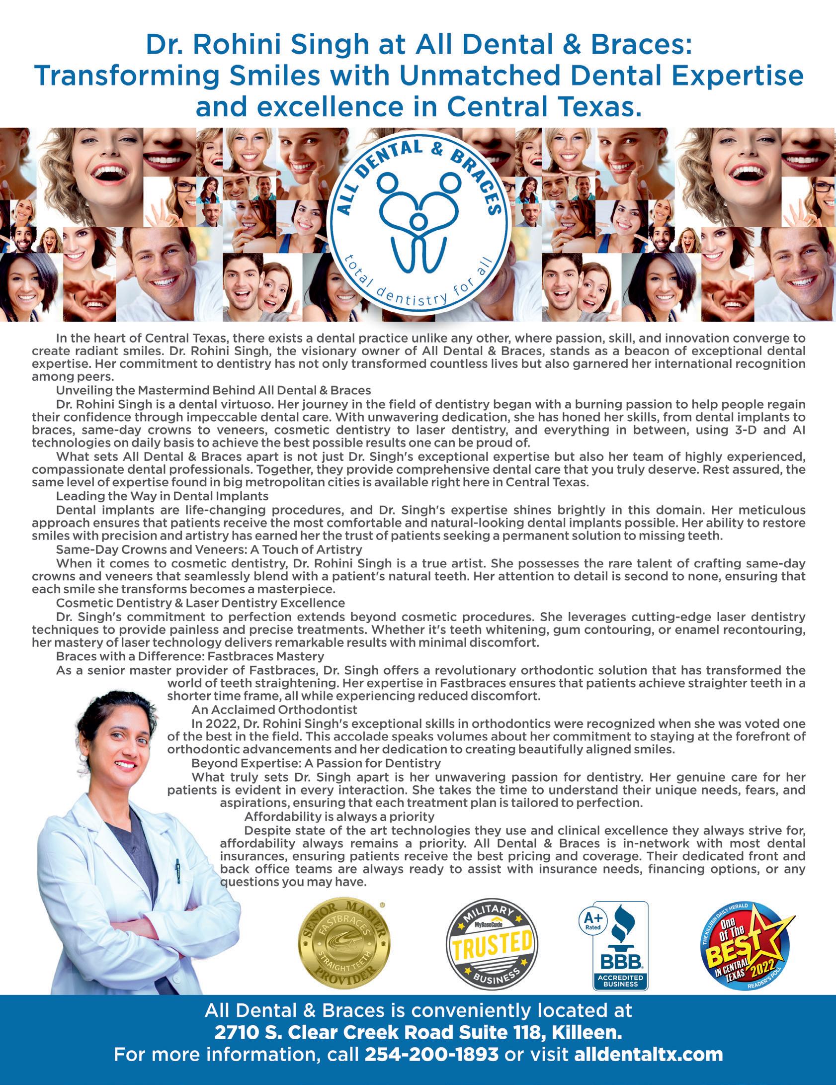 to the people and places involved in our photo shoots for this issue: Baylor College of Medicine Drs. Ari Rao and Kenneth Youens of Baylor Scott & White Health Dr. Raj Sinha of AdventHealth Haút Institute of Esthetics Dark Explorers Paranormal Interested in Advertising? 254-778-4444 (Temple) | 254-501-7500 (Killeen)