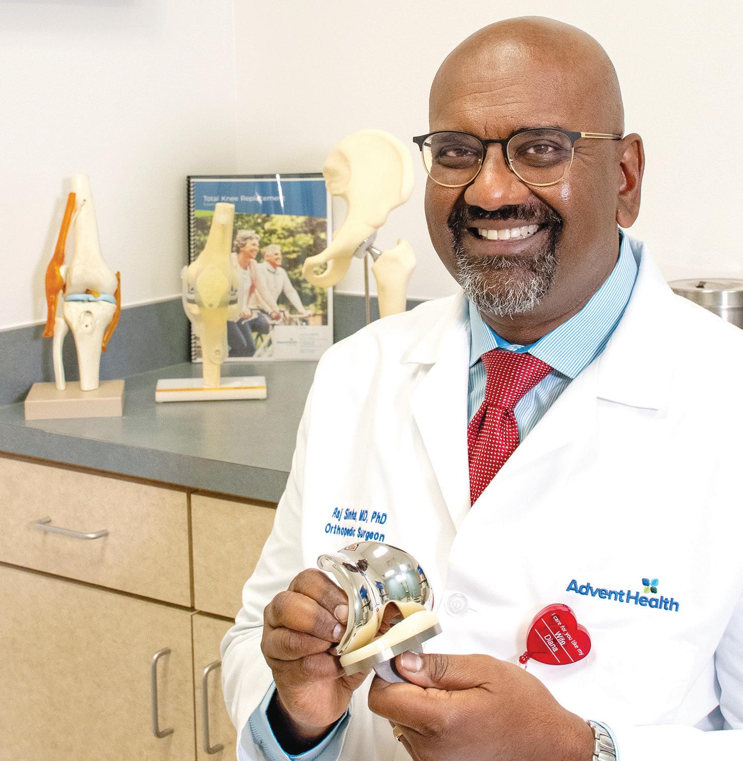 AdventHealth recently welcomed its new orthopedic surgeon, Dr. Raj Sinha. The renowned surgeon not only operates, but he also creates the joint replacements he puts into his patients. Find out all about the awardwinning surgeon on page 42.