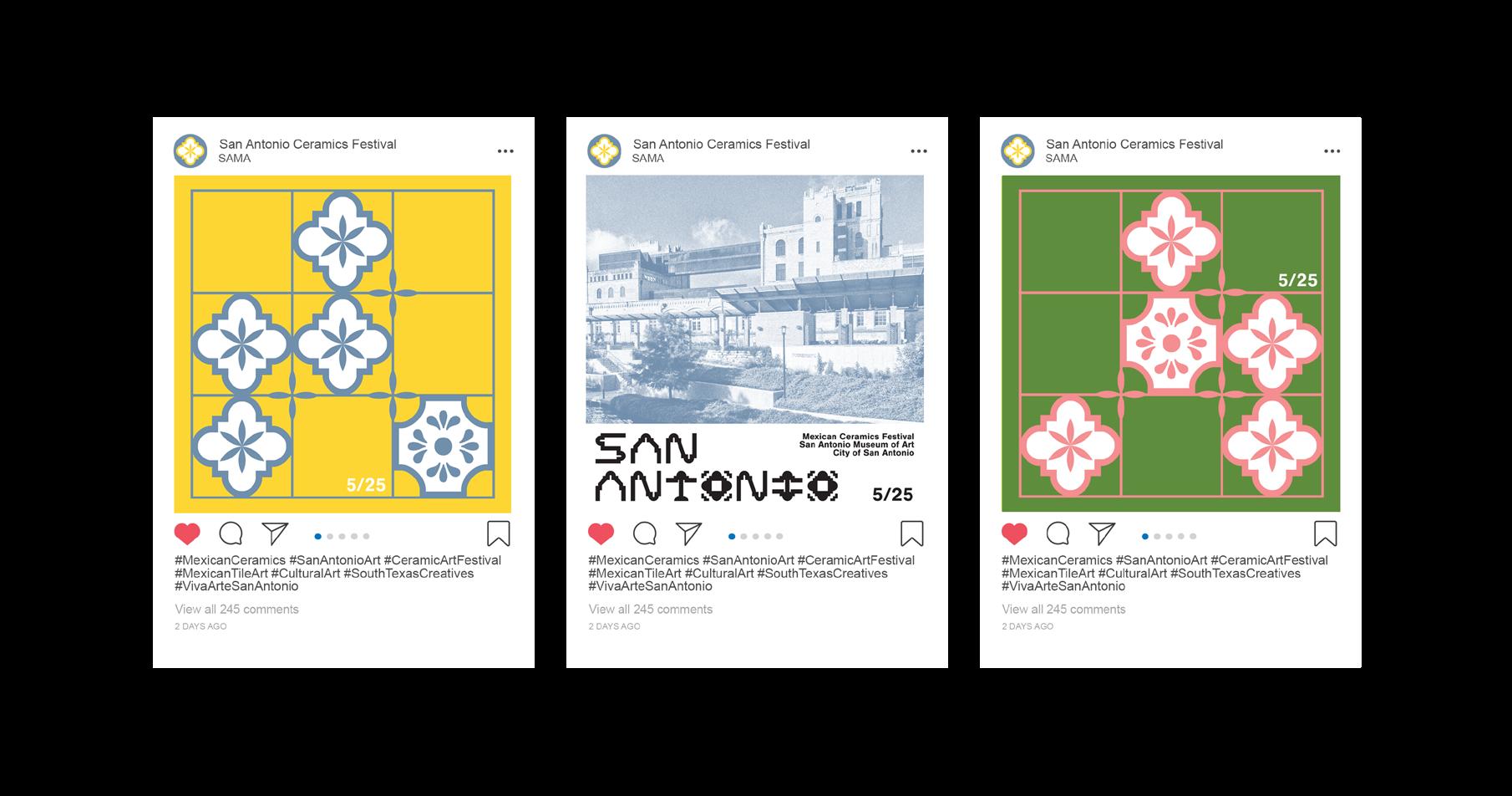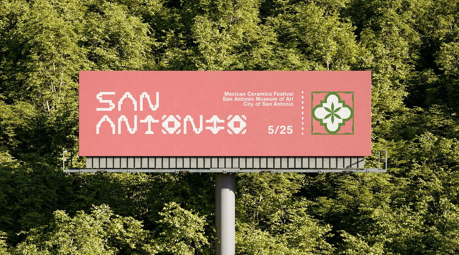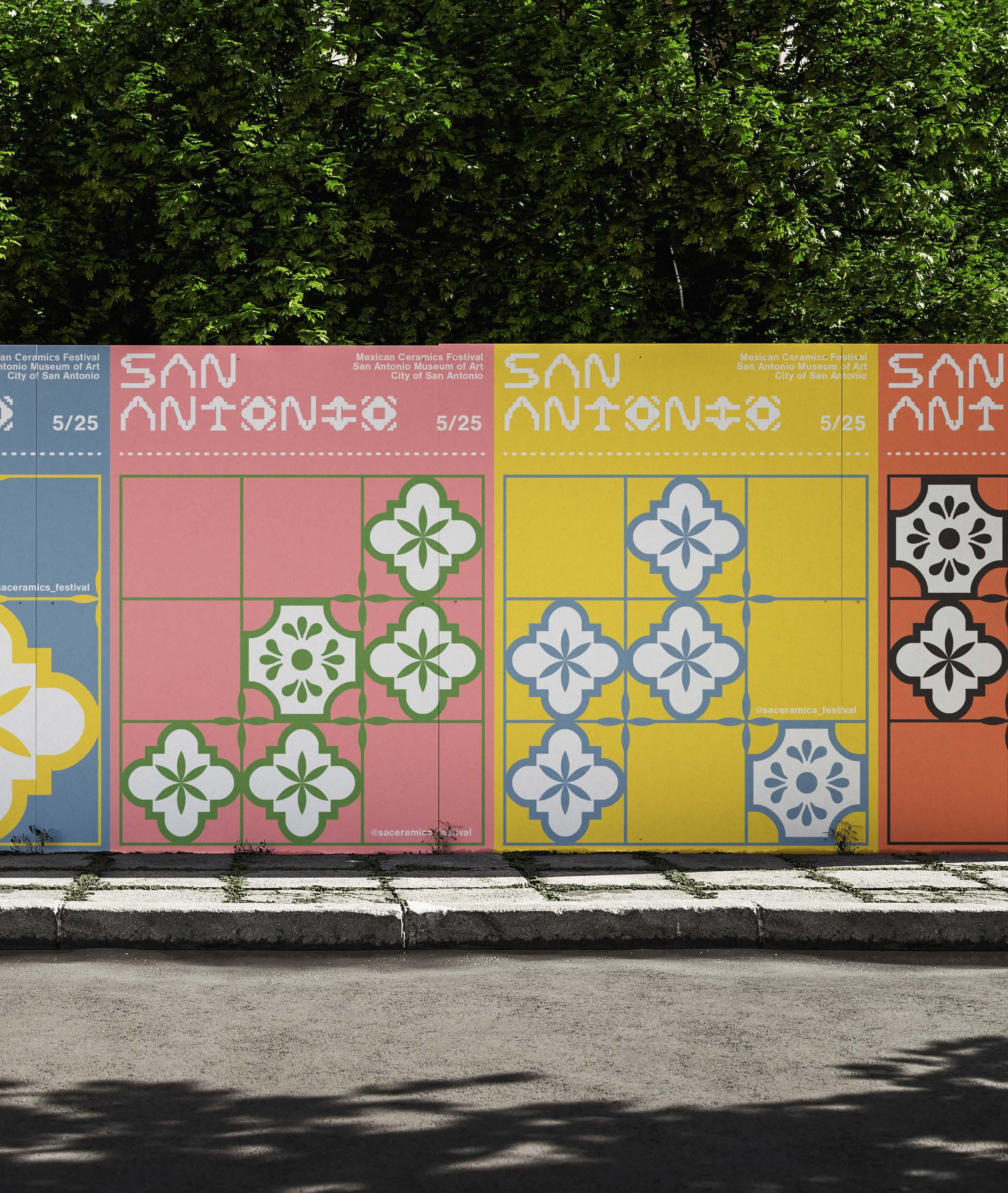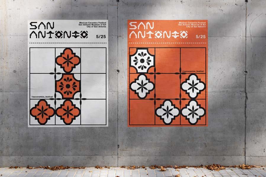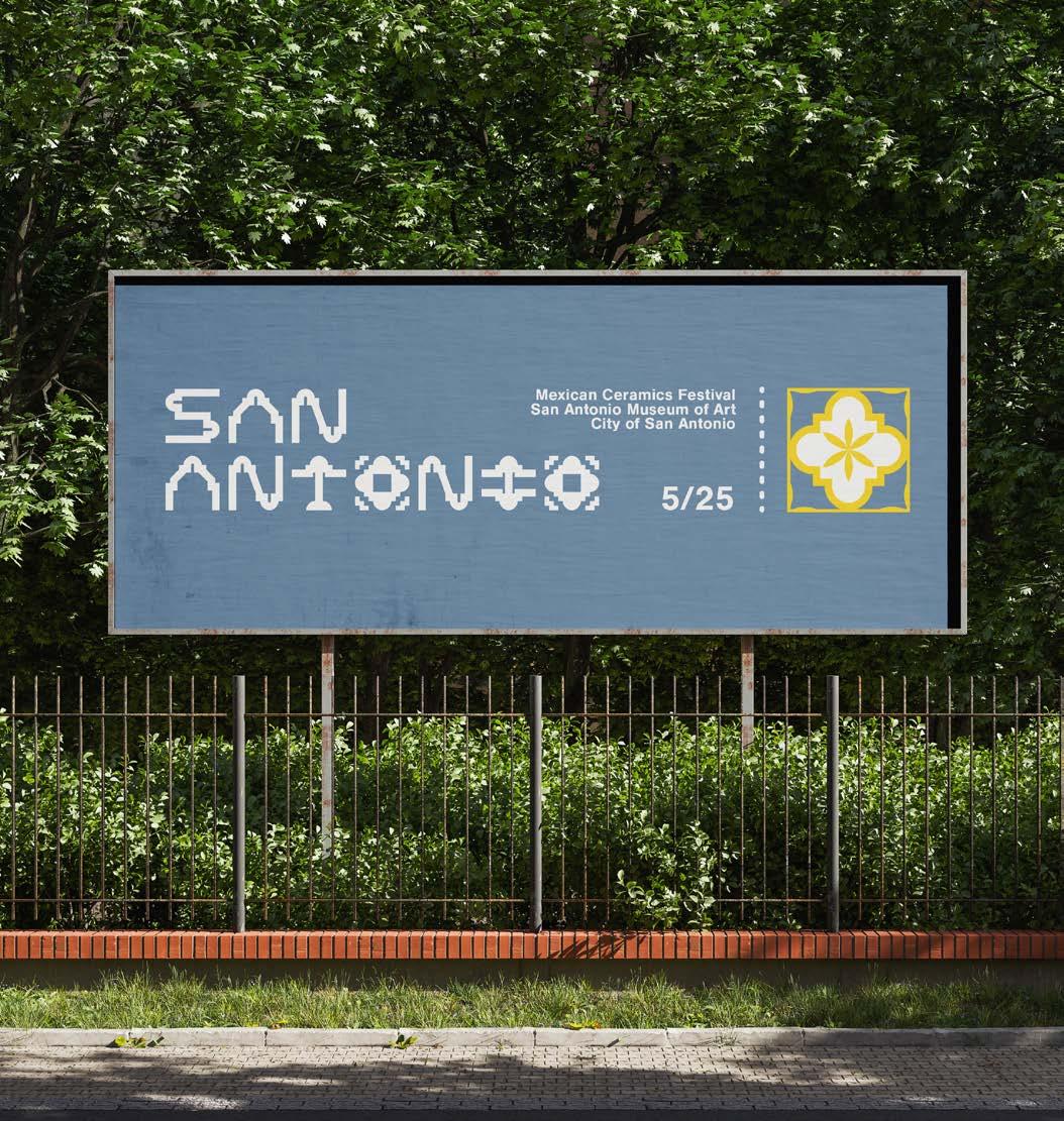 The project includes a series of event posters utilizing minimalist, clean, and evocative design principles, ensuring they stand out in the urban landscape. Drawing from hues traditionally associated with Mexican tile art and the vibrant San Antonio Fiesta celebrations, the visual identity incorporates iconic elements like the Rose Window, the Alamo, and the geometric grid system synonymous with traditional tilework. The typography used to craft the brand identity was developed using iconography central to San Antonio’s heritage, further rooting the festival in local culture. Additionally, the tile patterns within the identity are designed to represent the tiles that once decorated the missions of San Antonio, paying homage to their historic significance. These designs create a unified, adaptable brand identity that transitions seamlessly across platforms, from social media to street posters and billboards, making the festival accessible, engaging, and visually compelling. By blending tradition with modernity, the branding fosters a renewed appreciation for Mexican ceramics while building excitement for this grand celebration.