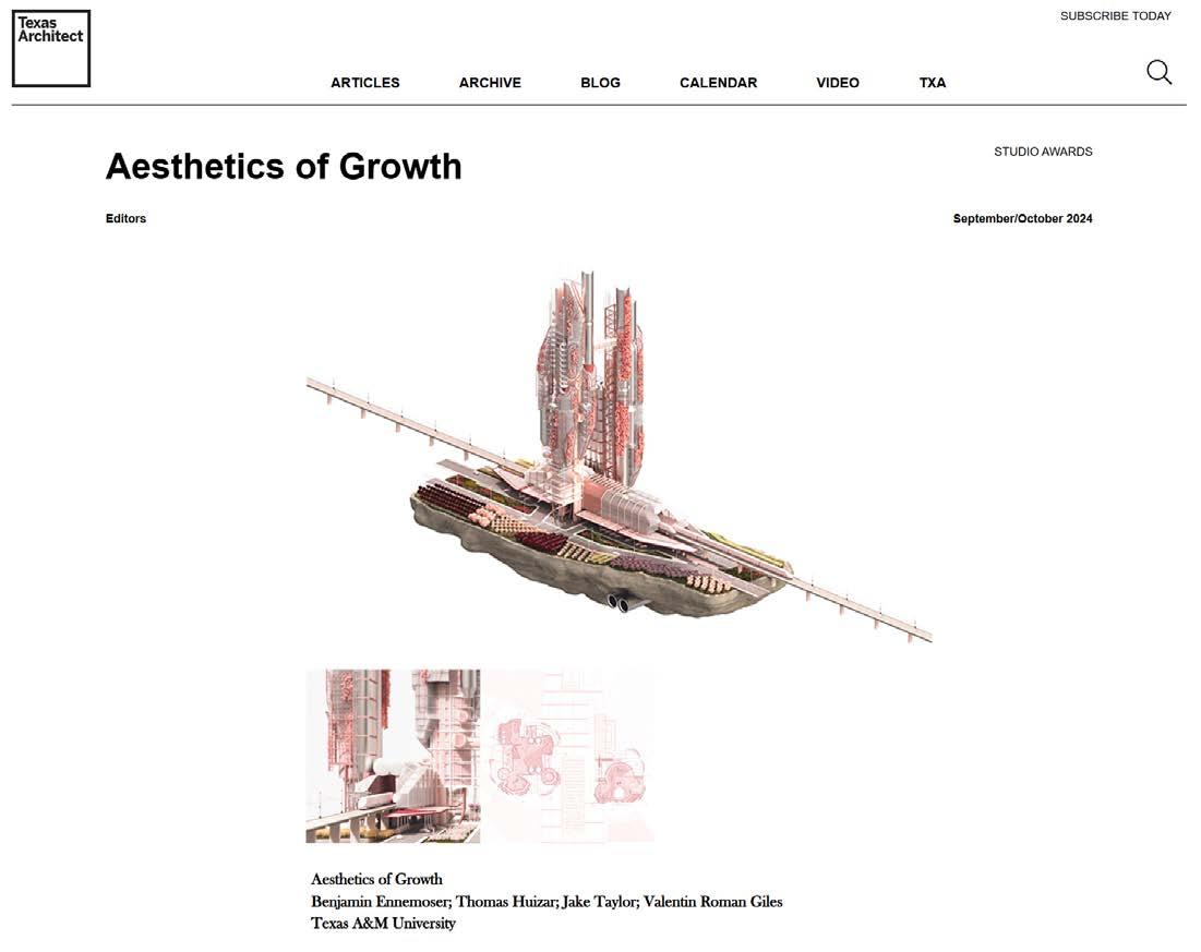The project gained significant recognition, featured in Texas Architect, DeZeen, Toffuco, and widely shared across social media platforms including Instagram, X (formerly Twitter), and LinkedIn. The widespread exposure required meticulous curation of the team’s final outputs to ensure the project was presented thoughtfully and comprehensively. This included crafting detailed visuals, renderings, and narratives that effectively communicated the vision, scale, and potential impact of the project to diverse audiences, from architectural professionals to the public.