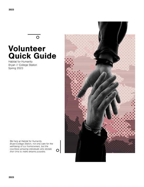 materials inspired by Swedish-style DIY construction manuals. These user-friendly documents provided volunteers with clear, easy-to-read construction instructions, making their tasks more accessible and enjoyable. Additionally, quick guides for new volunteers were designed with the same aesthetic, presenting information on the organization’s operations, guidelines, and best practices in a visually appealing and interactive format. The success of these designs extended beyond volunteer engagement. Their impact was so wellreceived that the same principles were applied to the development of proposed neighborhood planning documents. These materials, designed for prospective Habitat for Humanity projects, were presented to the advisory board of the Bryan/College Station branch, further demonstrating the versatility and effectiveness of the new branding approach.