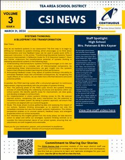 The Tea Area School District began a comprehensive shift in 2019. To advance the strategic plan, the district adopted Improvement Science principles. The updated strategic plan was created by multiple stakeholders (community members, business and parent groups, faculty and staff, board members, and administrators) engaging in a SWOT (Strengths, Weaknesses, Opportunities, and Threats) analysis. The qualitative and quantitative data were analyzed, resulting in the board-approved strategic plan pillars, defined focus areas, and Standards of Excellence (values).