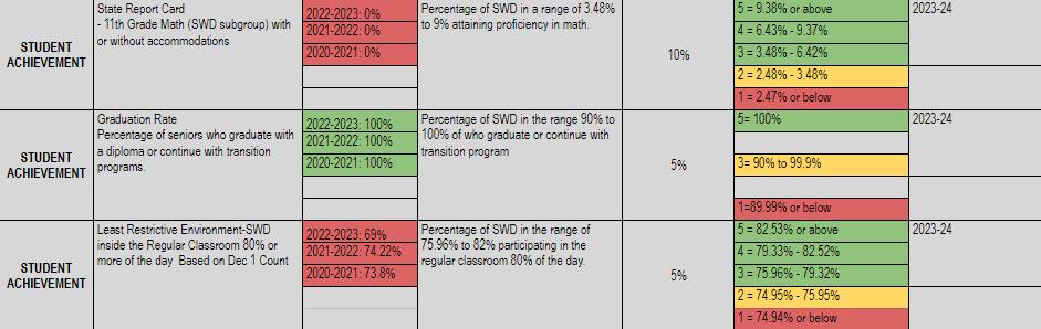Annual update and report to the Board- Special Education- Goal within scoreboard