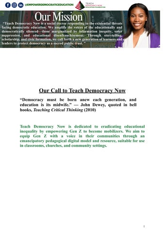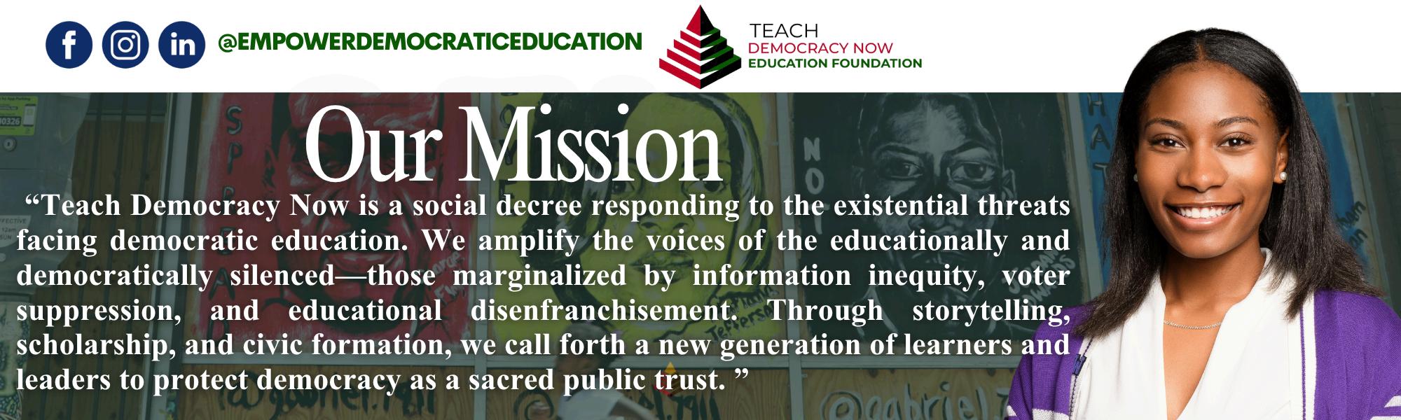 Through these efforts, Teach Democracy Now seeks to demonstrate that literacy,advocacy,andopportunityarethefoundationofajustdemocracy.
