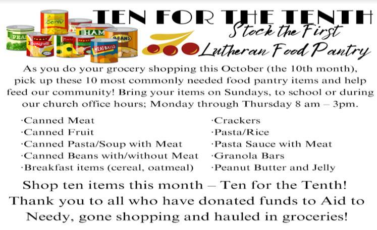 MUSIC – Mrs. Brey: Happy Reformation Month! October 31st is when the Lutheran church celebrates the Reformation and our good pal, Martin Luther. He is our composer of the month and we will learn about all he has done for the Lutheran church. Middle school is singing in church on Sunday, October 8th at 9am - see you there!