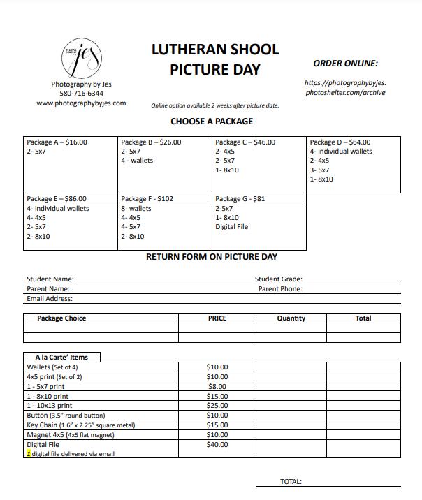 10/3 Picture Day (see order form included)