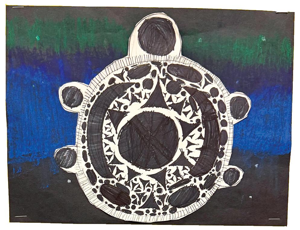 We begin the unit by exploring shape. What shapes do students already know? How do we recognize them? We discuss symmetry and look for examples in the world around us. I then introduce examples of Indigenous art through a PowerPoint of local art pieces and often by pointing out artwork in our school or community. Together, we examine the art for familiar shapes and for new ones. Students quickly notice that there are often shapes within shapes, sparking rich discussion and curiosity.