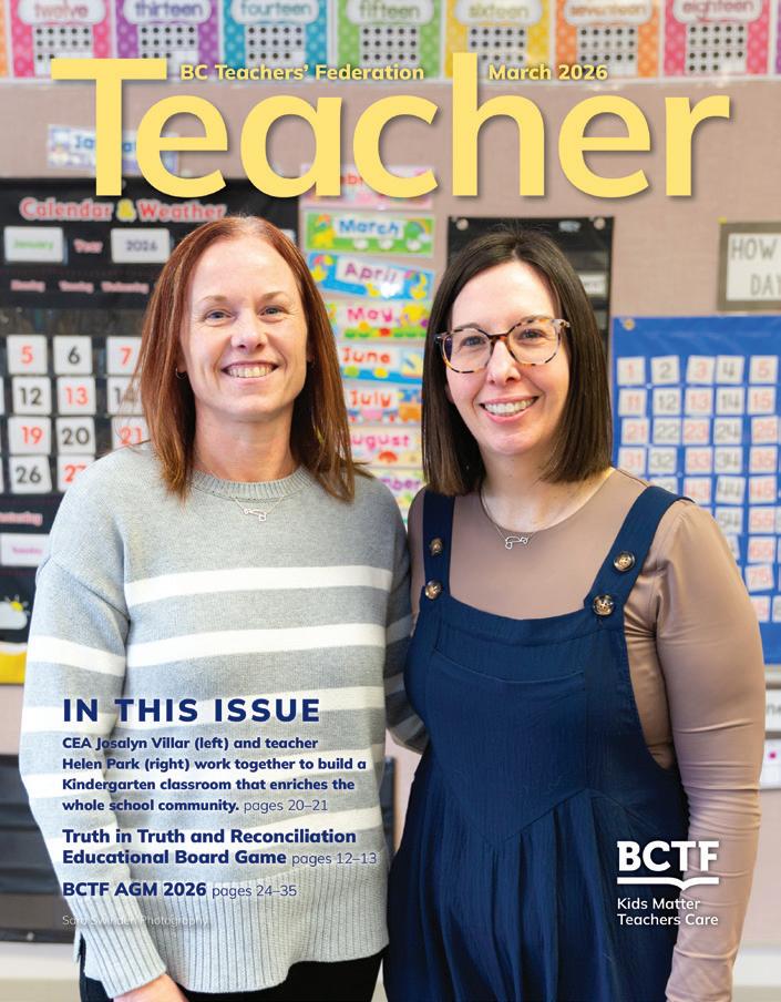 Articles reflect the views of the authors and do not necessarily express official policy of the BCTF. The BCTF does not endorse or promote any products or services advertised in the magazine.