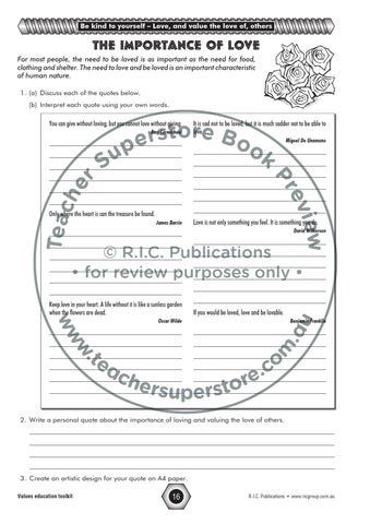 The importance of love For most people, the need to be loved is as important as the need for food, clothing and shelter. The need to love and be loved is an important characteristic of human nature. 1. (a) Discuss each of the quotes below. (b) Interpret each quote using your own words.