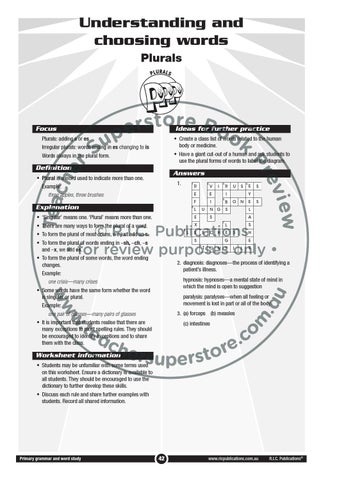 • Students may be unfamiliar with some terms used on this worksheet. Ensure a dictionary is available to all students. They should be encouraged to use the dictionary to further develop these skills. • Discuss each rule and share further examples with students. Record all shared information.