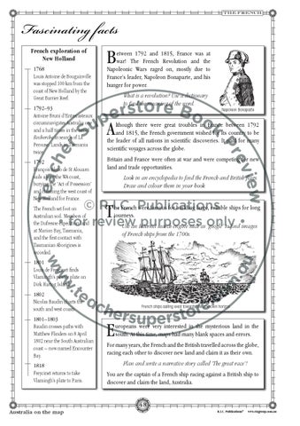 For many years, the French and the British travelled across the globe, racing each other to discover new land and claim it as their own. Plan and write a narrative story called ‘The great race’! You are the captain of a French ship racing against a British ship to discover and claim the land, Australia. 48