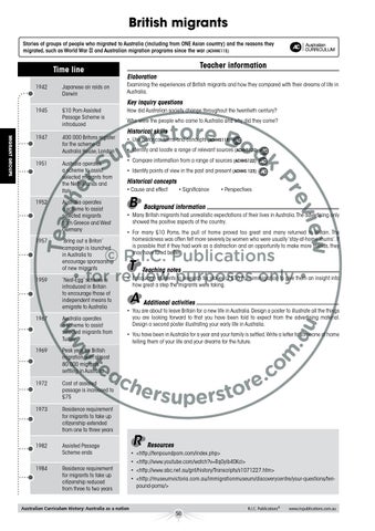• Encourage students to research for stories of £10 Pom immigration to give them an insight into how great a step the migrants were taking.