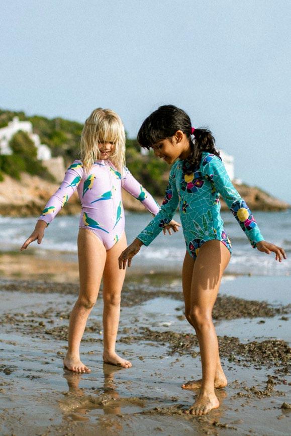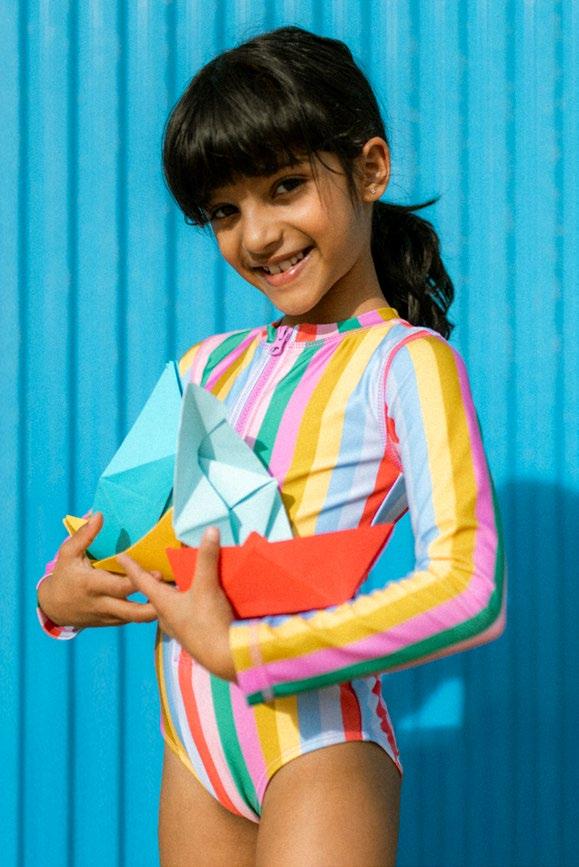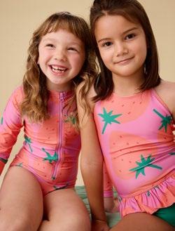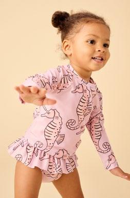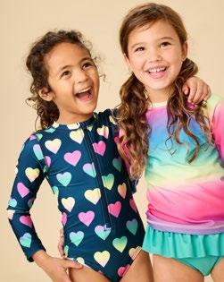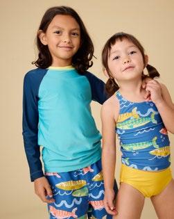 One-and-done rash guard suits, mix-and-match two-pieces, and ruffle details—all in artist-drawn prints, recycled fabric, and with UPF 50+ protection.