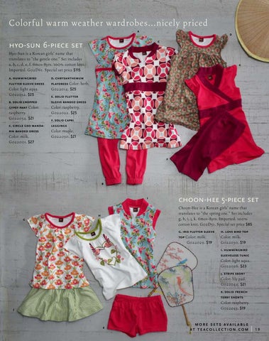 hyo-sun 6-piece set Hyo-Sun is a Korean girls’ name that translates to “the gentle one.” Set includes a, b, c, d, e, f. 6mos-8yrs. 100% cotton knit. Imported. G02D61. Special set price $115 a. hummingbird flutter sleeve dress