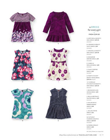 B . CE R A M I C A A M A L F I S H IF T D R E S S $ 3 9 6S12304 C . G R A ZIE L L A M I G H T Y M IN I D R E S S $ 2 9. 5 0 6S12331 D . M A Z A R IN E E M P IR E D R E S S $ 3 5 6S12300 E. C A MELI A P E P LU M D R E S S $ 3 9 6S12332 F. F U G A' S E M P IR E D R E S S $ 3 5 6S12301 G. P ON T I ' S FLIG H T M I G H T Y M IN I D R E S S $ 2 9. 5 0 6S12311