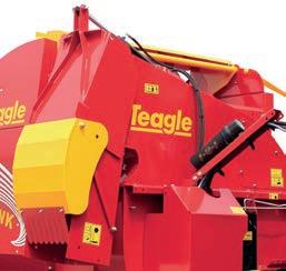 Le concept Teagle Dual Chop permet d’obtenir un effet ciseaux. Les fourrages sont coupés nets et calibrés à la longueur idéale pour l’alimentation, afin de créer une stimulation efficace du rumen. Gavin ajoute : « La paille est coupée en brins réguliers avec des extrémités coupées nettes. En coupant au besoin, on garde la paille fraîche que les vaches trouvent plus agréable, ce qui augmente la consommation et réduit les refus à l’auge »