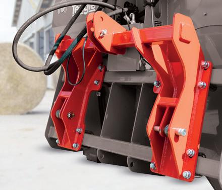 No PTO required! Quickly hitch up and connect hydraulic and electric supplies. The three-point tractor bracket allows the machine to be mounted either in front or behind the tractor.