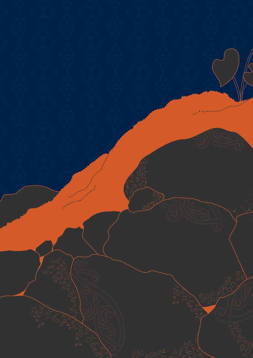 The koru is a reflection of our commitment to supporting our people, our whaanau to thrive. Koru are symbolic of whaanau and the circular pattern in it is also representative of the lava that carves through the whenua in both Ihumaatao and across Taamaki, a hononga to our whenua and our whakapapa in this volcanic landscape.