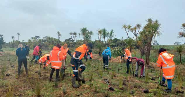 Te Ahiwaru engages with Watercare in various capacities, in November 2023 we hosted Watercare and Ghella Abergeldie environmental teams in a ‘Give Back’ coastal planting day at Te Puna Wai aa Hape, bordering Te Maanukanuka o Hoturoa.