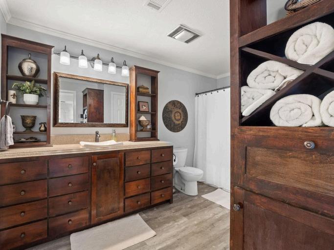 Discover your private sanctuary at 390 Jack Hines Rd, nestled on a sprawling 40-acre estate in DeRidder, LA. This exquisite property boasts 3 spacious bedrooms and 3.5 well-appointed bathrooms, offering a perfect blend of luxury and tranquility The kitchen is a culinary delight, equipped with modern appliances including a dishwasher, ice maker, and garbage disposal, complemented by custom cabinets. Enjoy the open living space with a cozy corner stone fireplace and convenient half bath for guests. Custom blinds add a touch of elegance throughout the home. Each bedroom comes with its own private bath, featuring walk-in showers The master bath includes an additional garden tub for ultimate relaxation A large laundry room with a sink provides ample space for household chores. Benefit from large closets throughout the home and a 2-car garage for added convenience