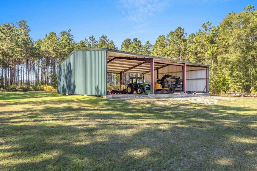 Escape to your own slice of paradise with this stunning cabin nestled on a sprawling 250 acre estate. Built in 2017, this home combines modern comforts with rustic charm, featuring wrap-around porches that invite you to unwind while taking in breathtaking views of your expansive property. Inside, you will find a warm and inviting open floor plan, perfect for entertaining or cozy evenings by the antique wood burning stove. Step outside to discover a massive pond, perfect for fishing, kayaking, or simply enjoying the serene sunsets. The property boasts a 50x60 shop, ideal for equipment storage. Acreage is comprised of approximately 130 acres of cultivated farmland, remainder in timber of both pine and hardwoods and ultimate hunting ground Access is via a long private drive, ensuring your peace and seclusion Whether you are looking for a weekend getaway or a full-time residence, this cabin offers the perfect blend of tranquility and adventure. Don't miss the chance to make this enchanting retreat your own!
