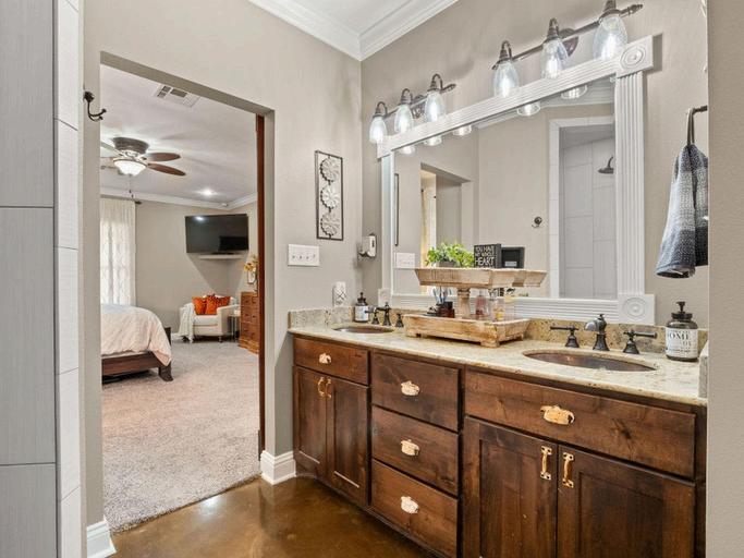 Your Dream Property Awaits! Remodeled 3-bedroom, 2 5-bath home with an office, gaming room, kitchen fit for a chef, new roof and fresh paint, as well as a 3-car garage You'll find rolling fields, 4 fully stocked ponds, a fully equipped 103x32 man cave, a stone carriage house featuring two generously sized stalls and wash bay, a 30x40 side area with a full RV hookup , and a spacious 100x50 RV Shop equipped with 2-50-amp plugs But wait, there's more! Prepare to be amazed by the established "Dry Creek Venue," a vast 8,206-square-foot space. This one-of-akind entertainment space features a covered area for cooking, a coffee room, and four heated and cooled bunkrooms, and two guest homes totaling 1,960 square feet complete with a kitchenette, and full baths. Additional highlights include two shops measuring 40x80 and 30x40 Seize this rare chance to own a piece of paradise and make your dreams come true Your future awaits at the "Dry Creek Venue" farm Schedule your private tour now!