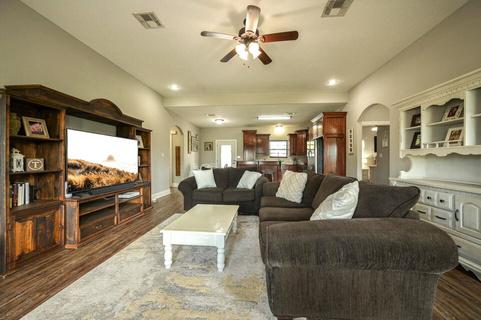 Welcome to Bella Oaks Farm, your own private oasis on 178 acres of picturesque rolling pastureland! This stunning 4-bedroom, 2.5-bathroom home offers the perfect blend of modern comfort and rustic charm, surrounded by breathtaking natural beauty. Step onto the front porch and immerse yourself in the tranquility of the towering live oak trees that shade the yard, creating the ideal spot to savor your morning coffee and watch the sunrise. In addition to the main house, this property boasts a charming guest house with an old-fashioned dog trot, providing a cozy retreat for visitors. Need space for projects or hobbies? You'll find plenty of room in the 36x40 shop on a slab with electricity, as well as the 12x20 equipment shed and a massive 46x60 insulated shop with A/C, heat, and roll-up doors.