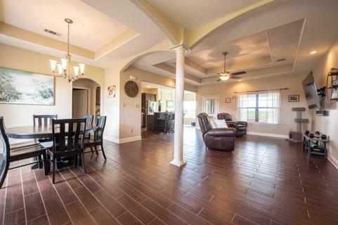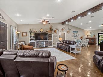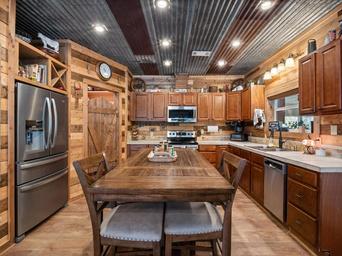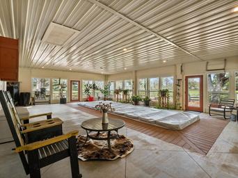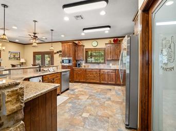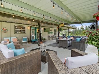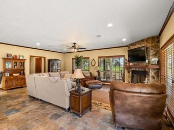 Remodeled 3-bedroom, 2 5-bath home with an office, gaming room, kitchen fit for a chef, new roof and fresh paint, as well as a 3-car garage You'll find rolling fields, 4 fully stocked ponds, a fully equipped 103x32 man cave, a stone carriage house featuring two generously sized stalls and wash bay, a 30x40 side area with a full RV hookup , and a spacious 100x50 RV Shop equipped with 2-50-amp plugs. But wait, there's more! Prepare to be amazed by the established "Dry Creek Venue," a vast 8,206-square-foot space. This one-of-a-kind entertainment space features a covered area for cooking, a coffee room, and four heated and cooled bunkrooms, and two guest homes totaling 1,960 square feet complete with a kitchenette, and full baths. Additional highlights include two shops measuring 40x80 and 30x40. Seize this rare chance to own a piece of paradise and make your dreams come true. Your future awaits at the "Dry Creek Venue" farm. Schedule your private tour now!