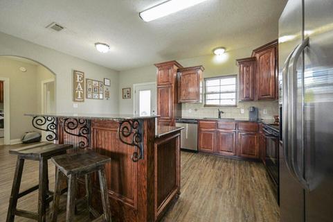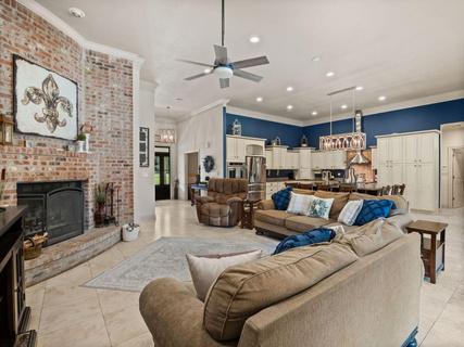 Welcome to your dream home nestled in the heart of DeRidder! This exquisite 4-bed, 3 full bath, and 2 half bath residence offers the perfect blend of elegance, comfort, and functionality. Step inside to discover an open floor plan, highlighted by a stunning brick fireplace that creates a warm and inviting atmosphere The extra-large kitchen is a chef's paradise, featuring a massive island with wrap-around seating, perfect for casual dining or entertaining The large game room is a standout feature, designed for fun and relaxation It comes with a built-in bar that includes a mini fridge, sink, and ice maker perfect for entertaining The property is situated on 3 4 acres in the city limits and includes a 24x30 shop Call today to schedule a tour of this beauty!