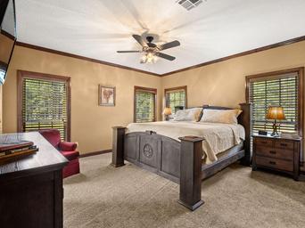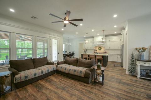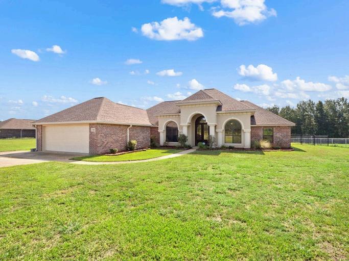 Discover your private sanctuary at 390 Jack Hines Rd, nestled on a sprawling 40-acre estate in DeRidder, LA. This exquisite property boasts 3 spacious bedrooms and 3.5 well-appointed bathrooms, offering a perfect blend of luxury and tranquility The kitchen is a culinary delight, equipped with modern appliances including a dishwasher, ice maker, and garbage disposal, complemented by custom cabinets. Enjoy the open living space with a cozy corner stone fireplace and convenient half bath for guests. Custom blinds add a touch of elegance throughout the home. Each bedroom comes with its own private bath, featuring walk-in showers. The master bath includes an additional garden tub for ultimate relaxation A large laundry room with a sink provides ample space for household chores. Benefit from large closets throughout the home and a 2-car garage for added convenience.