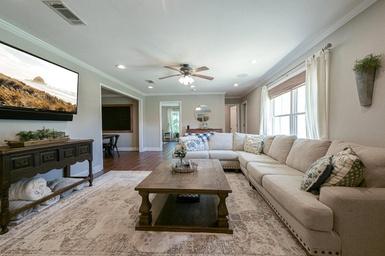 Welcome to 814 Birch Drive, a stunning and updated home that blends modern luxury with classic charm. Situated on a meticulously maintained 0.37-acre lot, this home is within golf cart distance to the Beauregard Country Club where you can enjoy tennis, golf, swimming, and dining. As you step inside, you'll be greeted by a spacious formal living room, leading to a second living room perfect for entertaining or relaxation with a two-way fireplace and breakfast nook. The chef's dream kitchen is a culinary masterpiece, featuring double ovens, ample counter space, and a formal dining area, ideal for hosting dinner parties! This home boasts four generously sized bedrooms and two bathrooms. The large upgraded back porch, complete with a ceiling fan and a picturesque archway to the back yard, offers a serene outdoor retreat for morning coffee or evening relaxation Experience the best of DeRidder living in this beautifully remodeled home. Schedule your private showing today and start living the lifestyle you've always dreamed of!
