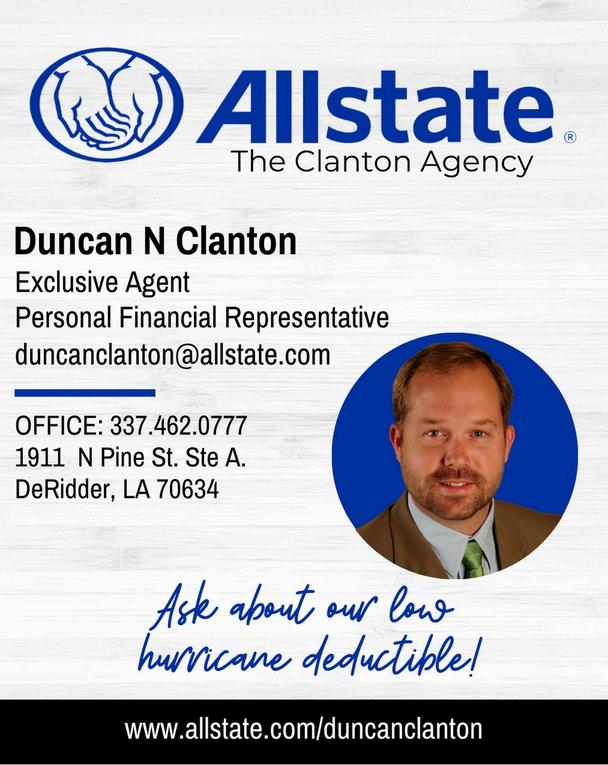 Thank you to our sponsors for your continued support! EXIT REAL ESTATE CONSULTANTS Eachofficeisindependentlyownedandoperated LicensedbyLREC WayneHall,Owner/Broker1909N PineSt,DeRidder,LA(337)463-1000