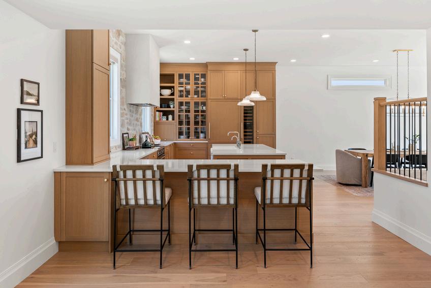 The kitchen is a chef’s dream and an entertainer’s delight At its heart are the stunning Silestone Calacatta Gold quartz countertops, seamlessly blending beauty and durability. Custom Westwood Maple Stratford cabinetry with soft-close Blum drawers offers timeless charm and practical storage. A suite of premium appliances, including a Sub-Zero fridge, 18” Sub-Zero wine storage for 59 bottles, Paykel & Fisher induction oven, and dual dishwashers, caters to culinary enthusiasts Elevated details such as Brizo faucets and the warm Ledge Stone backsplash evoke the rustic charm of Tuscany, making every moment in the kitchen a visual and tactile pleasure The expansive island and peninsula provide ample storage and seating, making it perfect for casual mornings or lively dinner parties. Combined with 10’5” ceilings and seamless transitions to dining and living areas, this kitchen truly sets the stage for a lifestyle of culinary excellence and sophisticated gatherings