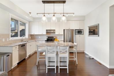 Welcome to Amberhill in the award-winning Kettle Valley community, where this expansive 1,915 sq ft townhome is ready to impress. This bright and airy residence features 3 beds, 2.5 baths, and an open-concept main level. The spacious living and dining areas seamlessly connect to a modern kitchen equipped with a large island, seating area and SS appliances. Upstairs, you’ll find 3 generously sized bedrooms, including a primary suite with a luxurious five-piece ensuite and spacious walkin closet. A large laundry area is conveniently located on this level. The fully finished lower level offers a versatile recreation room. Outside, enjoy the privacy of a fenced yard and the convenience of street parking for easy access. A deck off the back is perfect for BBQs, and the attached double-wide garage provides abundant storage & vehicle space. Located minutes from Chute Lake Elementary and Lebanon Creek’s scenic walking & hiking trails, this pet and rental-friendly townhome offers everything today’s discerning buyer desires.