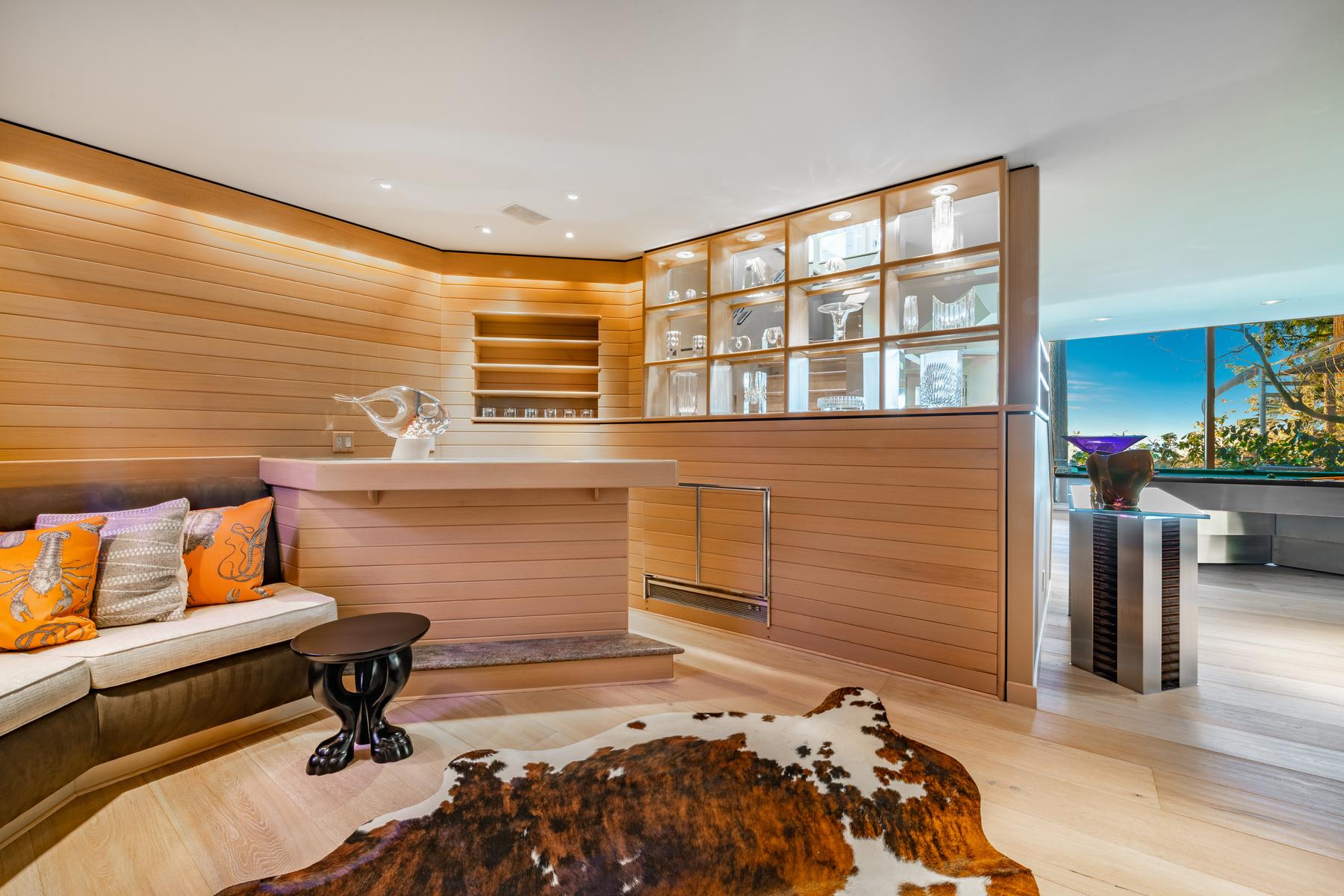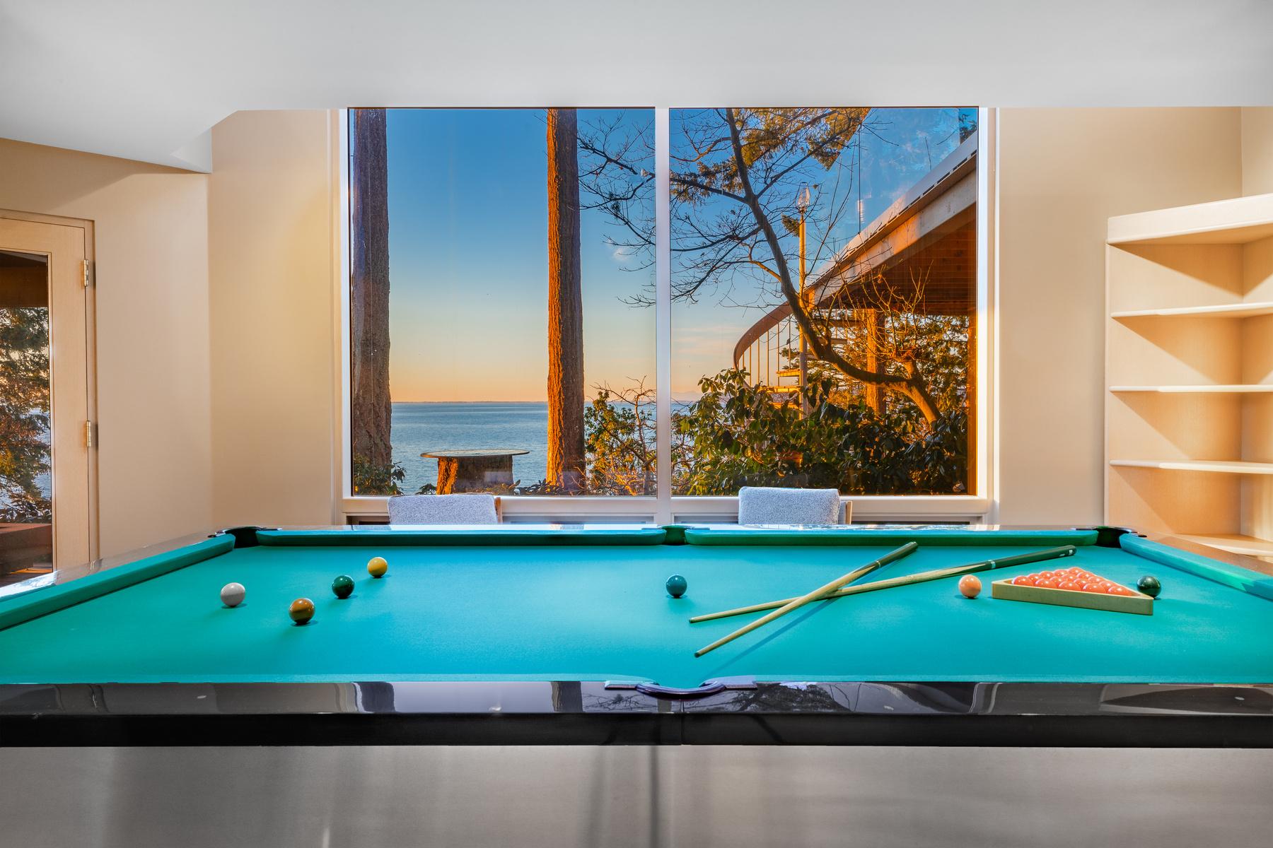A sophisticated entertaining space on the lower level is perfect for a game of pool or wine tasting in the wet bar.
