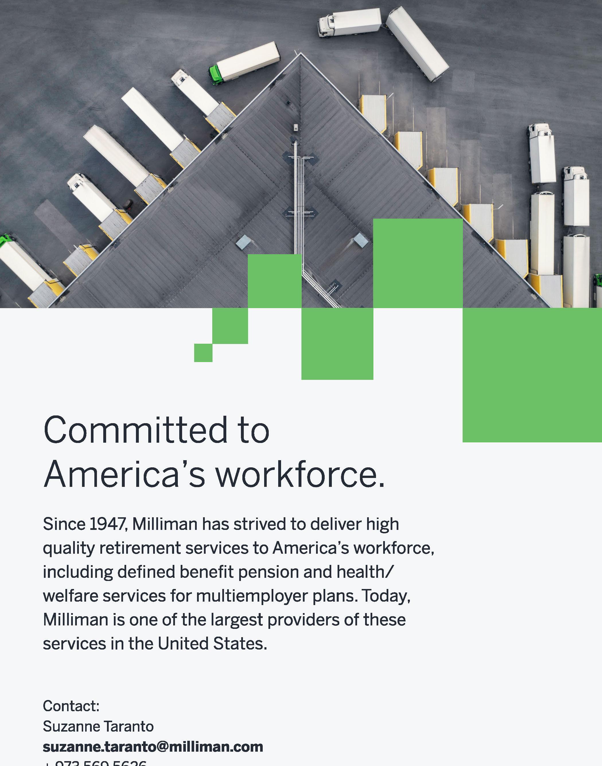 Milliman is an actuarial, risk management and employee benefits consulting firm. Milliman provides health care benefits plan actuarial and consulting services, defined benefit plan actuarial services and defined contribution retirement plan administration and consulting services.