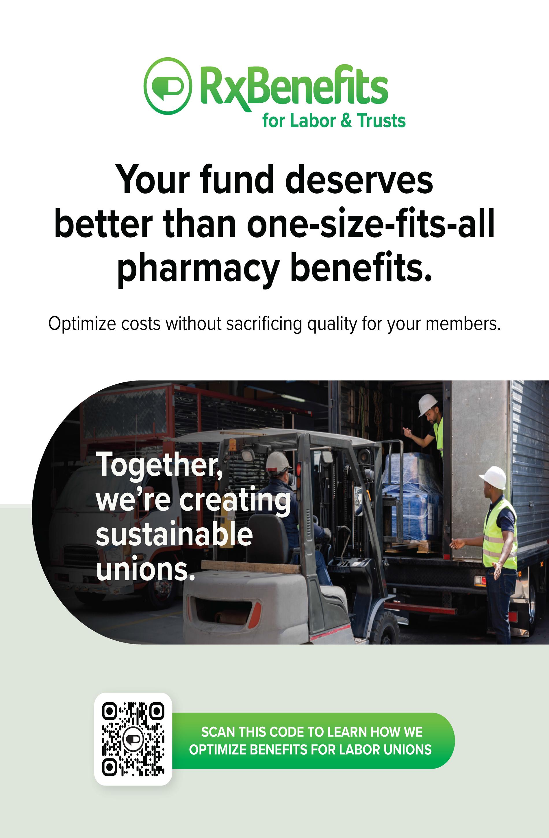 Unified Labor Rx is a next-generation PBM built for organized labor. We deliver integrated, costeffective services that aggressively secure the best outcomes for clients and members. Our unique model ensures world-class service at a fraction of traditional PBM costs, making us a true partner in managing healthcare benefits.