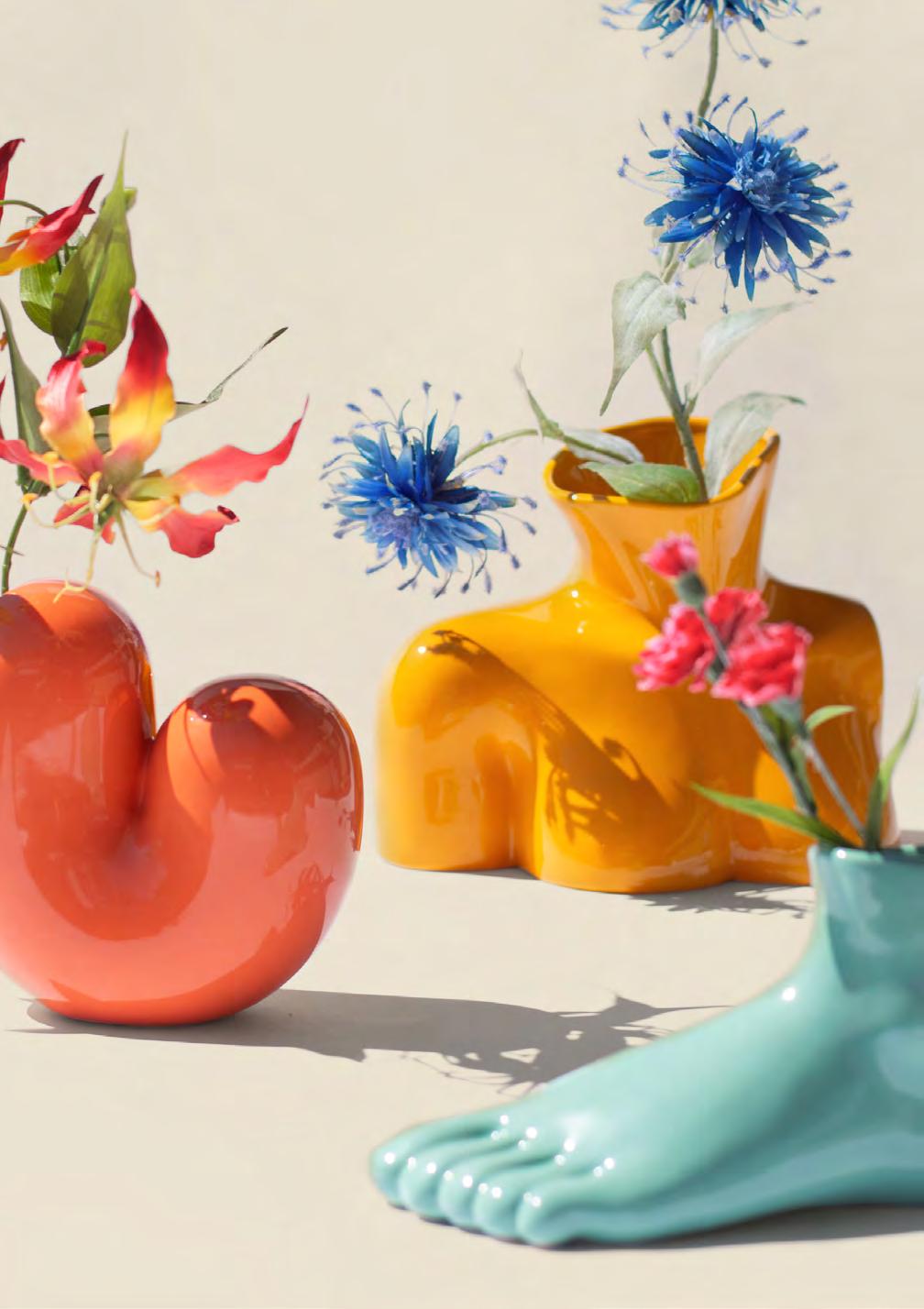 The colorful vases and jewelry holders are complemented by the brain-shaped candle. In case you're wondering which body part the orange vase should be: The sulcus vase is exactly the brain cell responsible for good ideas. The foot and torso vases can also be used as bookends.